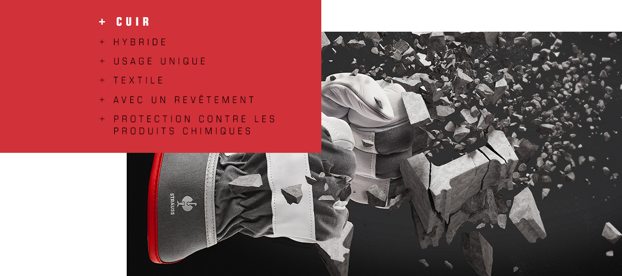 mentionnés dans le tableau. Les gants de travail résistants de Strauss remplissent les exigences des