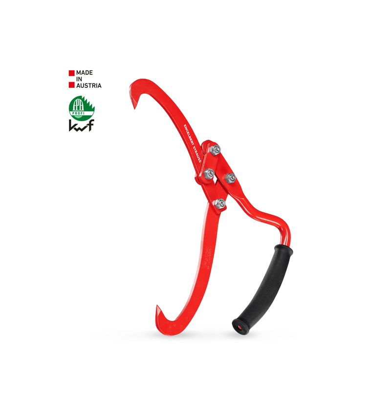 • gebogener Handgriff für eine ergonomische Haltung beim Ziehen und Anheben von Holzstücken