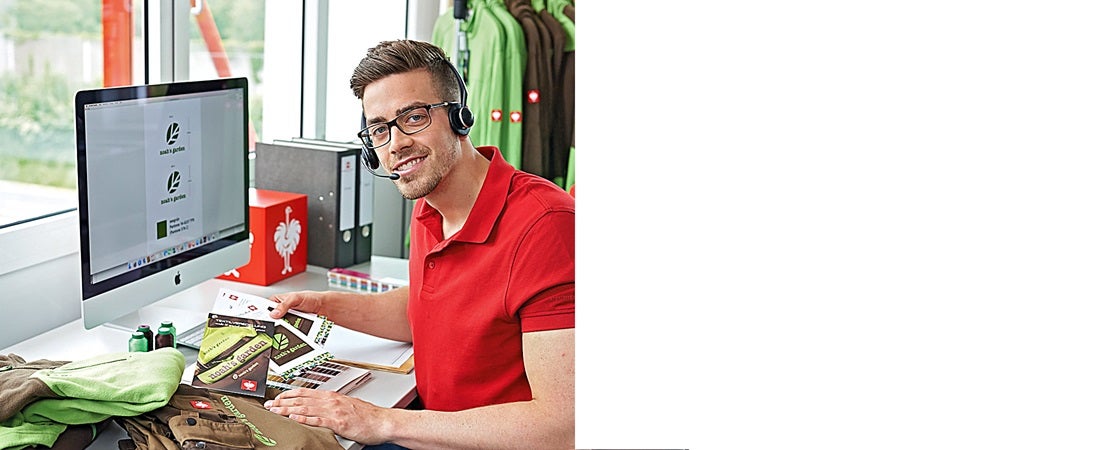 Daniel: Es gibt sehr viele unterschiedliche Aufgaben. Da ergibt sich für Jeden die Möglichkeit, seine Fähigkeiten einzubringen. Im Kundenservice ist man absoluter engelbert strauss Experte. Die Kollegen dort kennen das gesamte Sortiment und wissen ganz genau, welches Produkt für welchen Einsatz geeignet ist. Im Textilveredelungsteam sitzen die Kollegen, die sich bestens mit dem Logo und dem einzigartigen Auftritt des Kunden auskennen. Sie wählen ein individuelles Outfit für den Kunden, passend zum CI des Unternehmens, aus und setzen das Kundenlogo auf der Bekleidung um. Diese Mitarbeiter haben ein besonderes Auge für Formen und Farben. Und es gibt noch viel mehr spannende Einsatzgebiete im Vertrieb.