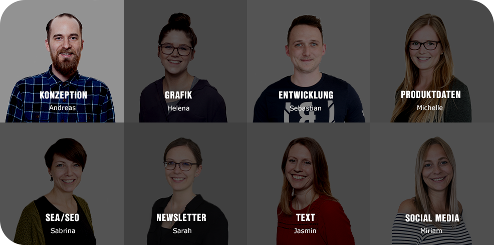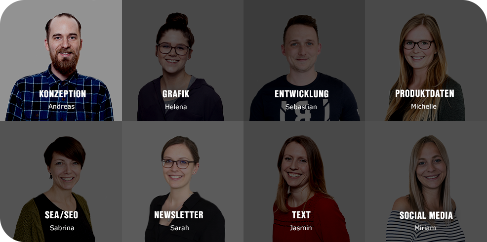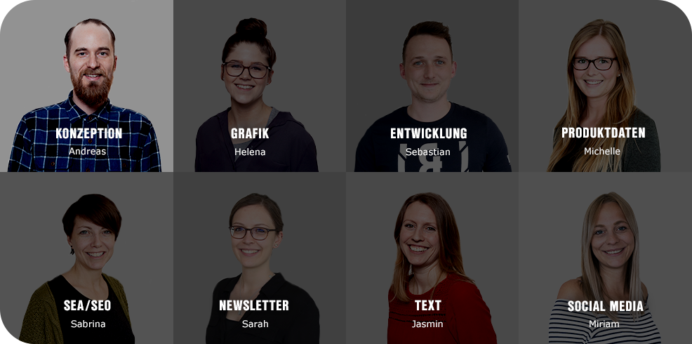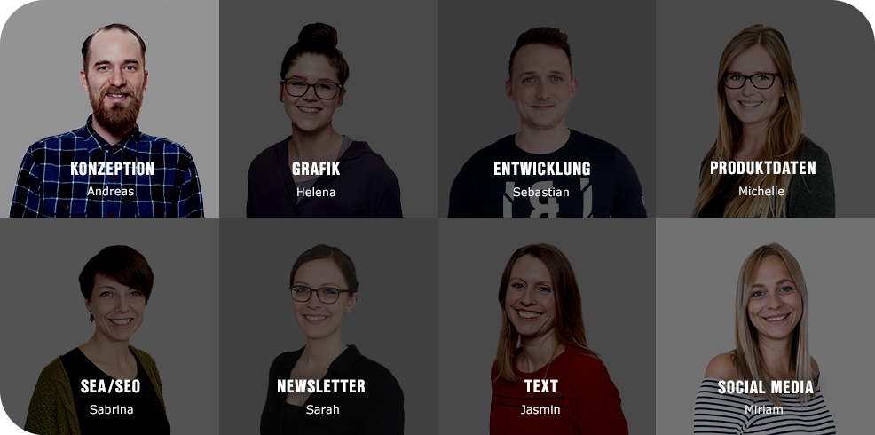 Im Team entwickeln wir innovative Erlebniswelten, mit denen wir unsere Leidenschaft fürs Handwerk und die Begeisterung für unsere wegweisenden Produkte transportieren. Dafür arbeiten Profis aus den Bereichen Grafik, Entwicklung, Datenmanagement, Text und SEM Hand in Hand zusammen und streben jeden Tag danach, perfektes eCommerce-Handwerk abzuliefern.