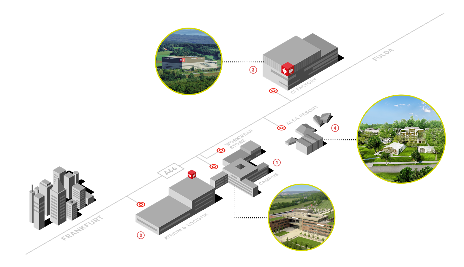 A hands-on approach with a good mix of characters are what make our logistics team special at several locations. Everything we do at our Workwear Valley on the A66 focuses on workwear. The headquarters and CI Factory are located very close to the Frankfurt Airport. Atrium, logistics and the Campus are the operative mainstays of the company. The customer calls us or contacts us online, and we advise, print and embroider, we pick orders and then the ostrich starts its journey! The CI factory in Schlüchtern combines state-of-the-art logistics and production solutions: One million storage slots, 13 kilometres of conveyors, robots in the shoe factory.
