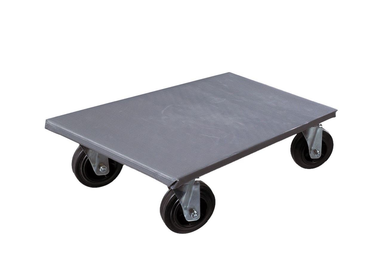 Multipurpose dolly made from multiple layers of laminated plywood with a textured grey anti-slip surface. Steering wheel plates with 4 screwholes for maximum stability. Four solid rubber swivel casters.