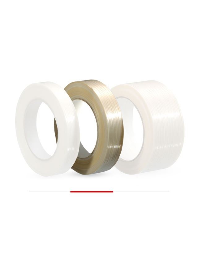 Highly tear proof polypropylene adhesive tape reinforced with glass fibres for very heavy packages. The glass fibres in the tape raise the tear resistance to up to 70 kg.