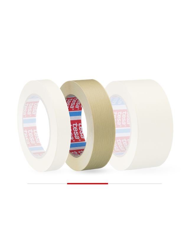 Slightly creped, thin and flexible paper masking tape with very good paint adhesion. The masking tape is resistant to wet sanding and has good lacquer and filler adhesion properties on the adhesive tape backing. Brief resistance to temperatures up to 70 °C.