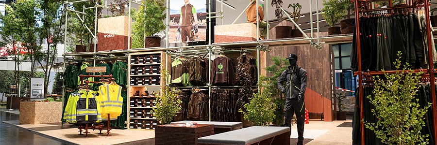 L'artisanat est tactile, palpable, maniable. Il est donc logique de présenter nos produits aux artisans en direct et en couleur. Que ce soit dans un Workwearstore, un Pop up Store ou sur un salon, nous mettons nos vêtements de travail en valeur partout. Aménagement paysager, électricité, construction – une véritable expérience pour chacun, c’est promis.