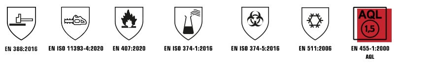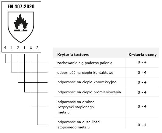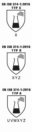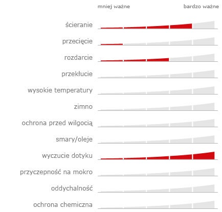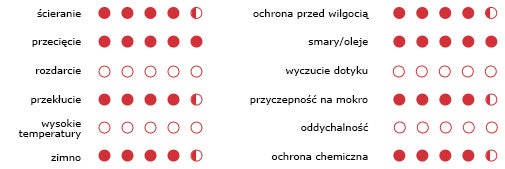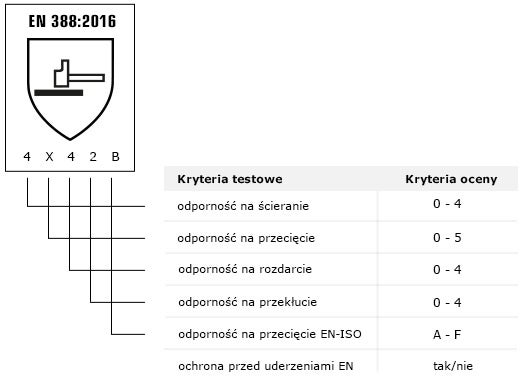 Rękawice ochronne są testowane według różnych kryteriów. Piktogram na stronie produktu informuje, jaką ocenę rękawice uzyskały dla danego kryterium testowego.