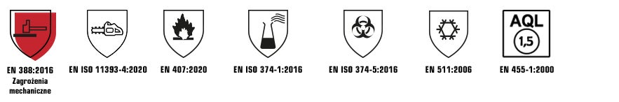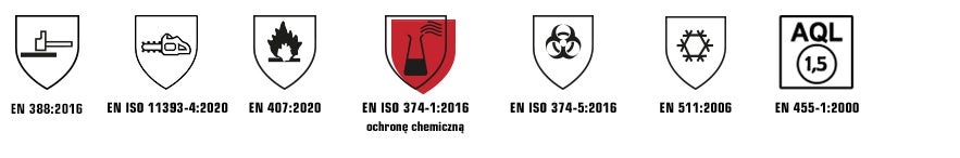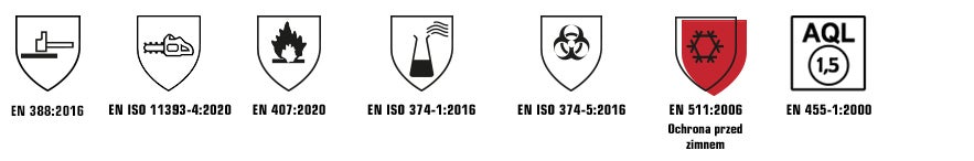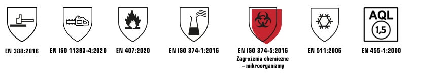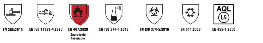 rękawic dostarczają obowiązujące normy EN wraz z oznaczeniami