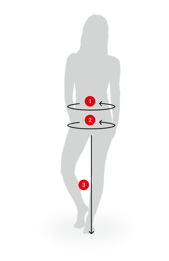Ułóż miarkę poziomo w najszerszym miejscu bioder.
