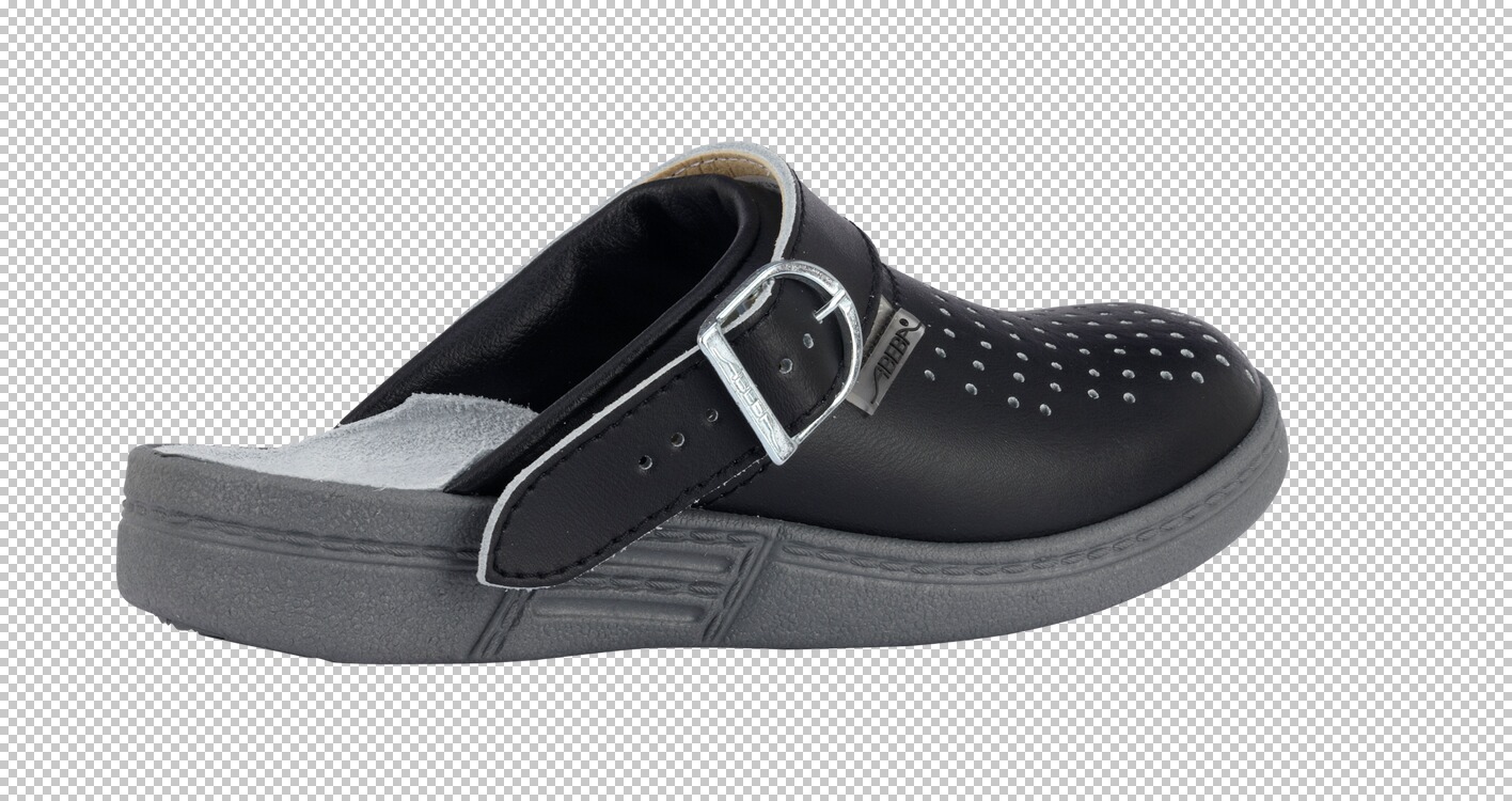 • Flat, anti-slip sole according to SRC and DIN 4843 Part 100 (R1), resistant to animal fats