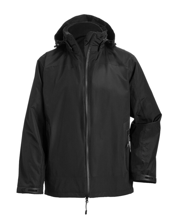 Sportig funktionsjacka med vattenavvisande, vindavvisande och andningsaktiv utrustning. Två fullvärdiga jackor kombinerade till en ger ett multifunktionellt klädsystem. Om den vattentäta, rörelseelastiska ytterjackan inte längre behövs på grund av att himlen klarnar upp kan den värmande fleece-innerjackan även användas separat.
